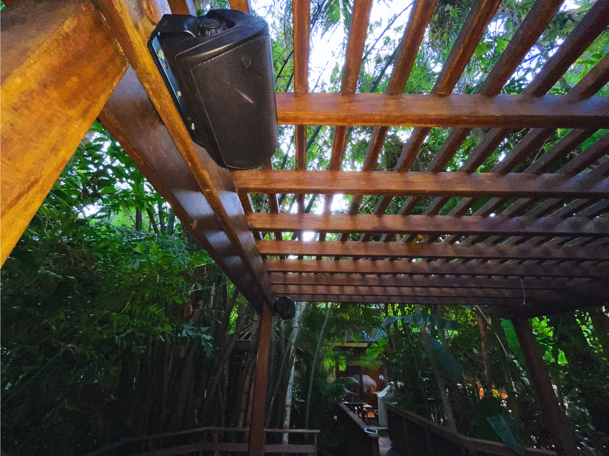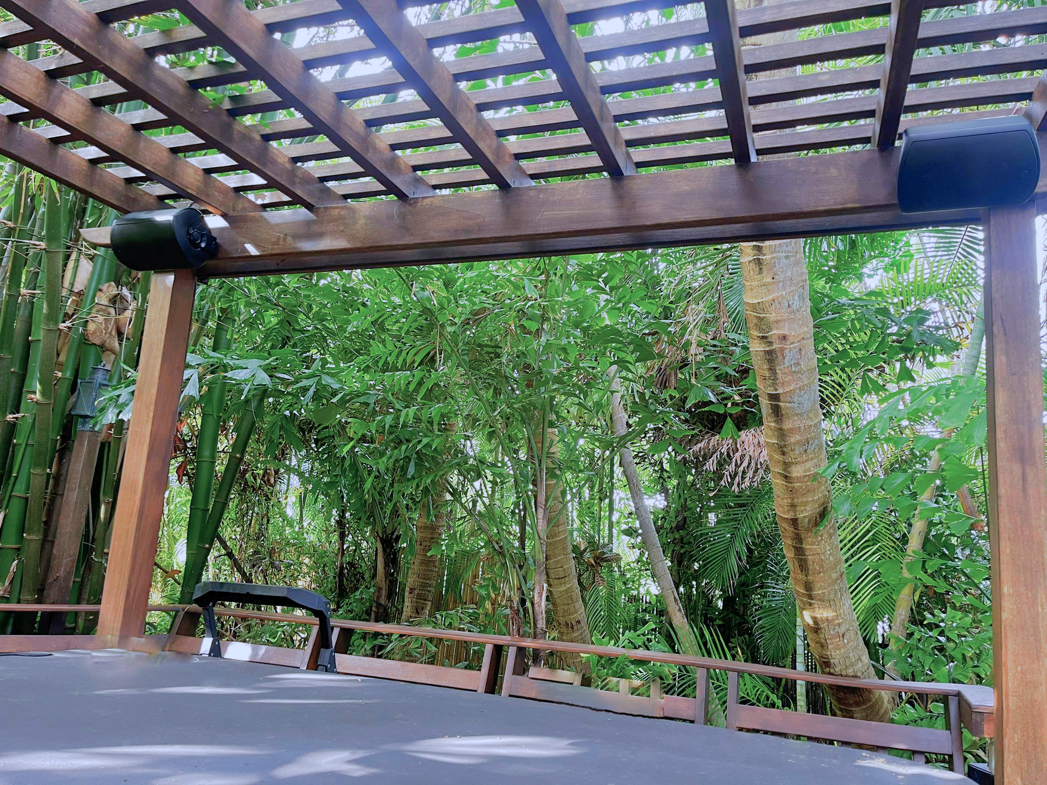 Each speaker is strategically placed, not only to optimize the listening experience but to complement the natural beauty of the surroundings.